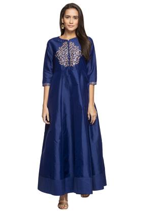 Nature has played muse to several artists over the decades as it also did with renowned designer Gaurav. Gaurav’s clothing line was peculiarly inspired by ‘Kadali-Patram’, meaning banana leaf in Sanskrit. Similar inspirations were also seen in Stanzin’s work who used flowy silhouettes made with a blend of natural fabrics like Pashmina, silk, rayon, and brocade. You too can enjoy the natural comfort of silk with the Shoppers Stop solid A-line silk kurta by Varanga.